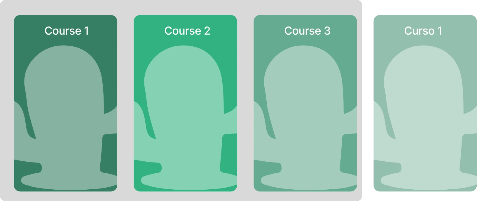 In the showcase, your student sees other available courses. You sell more without leaving the platform.